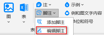 当需要插入并编辑表脚注时,点击表述形式中的“表脚注”,会弹出如下图所示的下拉菜单。
