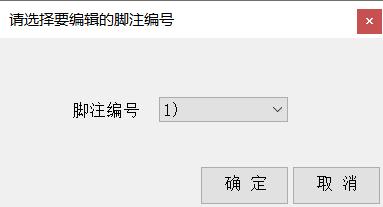 当需要在表内插入与其他表脚注相同编号的表脚注内容时,将光标置于需要添加同号表脚注的内容后面,点击上图下拉菜单中的 “添加同号表脚注”,会弹出以下窗口。